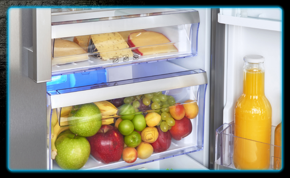 Güneşten ilham alan HarvestFresh ™ 3 ışık teknolojisi buzdolabınızda 24 saatlik doğal gün ışığı döngüsünü simüle ederek meyve ve sebzelerin vitamin değerlerini daha uzun süre korur, ilk günkü gibi taze kalmalarını sağlar. Güneş döngüsünü simüle eden bu benzersiz ışık teknolojisi sayesinde, size sadece yemeklerin ve daha sağlıklı bir yaşam tarzının keyfini çıkarmak kalır.