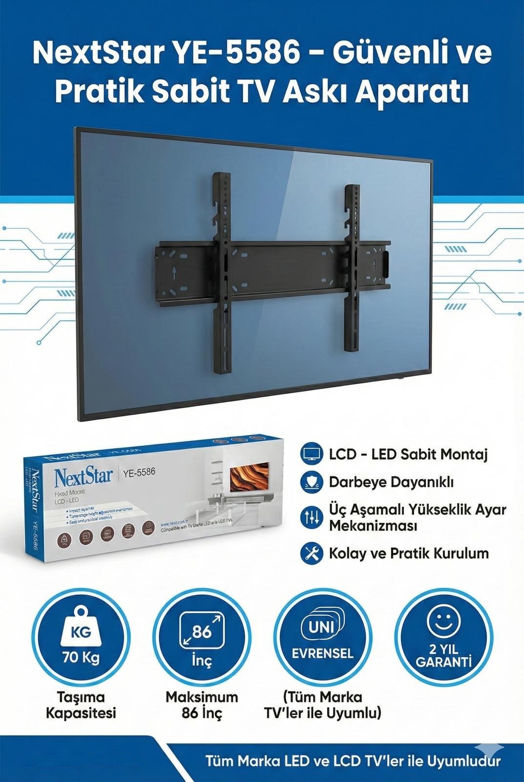 • 55”-86” arası tüm LCD-LED-PLAZMA ürünleriniz için uygundur