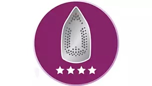 Özel SteamGlide tabanımız her kumaş üzerinde rahatça hareket eder. Paslanmaya karşı dayanıklı taban da dahil olmak üzere 5 katmanlı dayanıklı kaplama tabanın daha uzun süre kullanılmasını sağlar. Yapışmaz, çizilmeye karşı dayanıklıdır ve kolayca temizlenebilir.